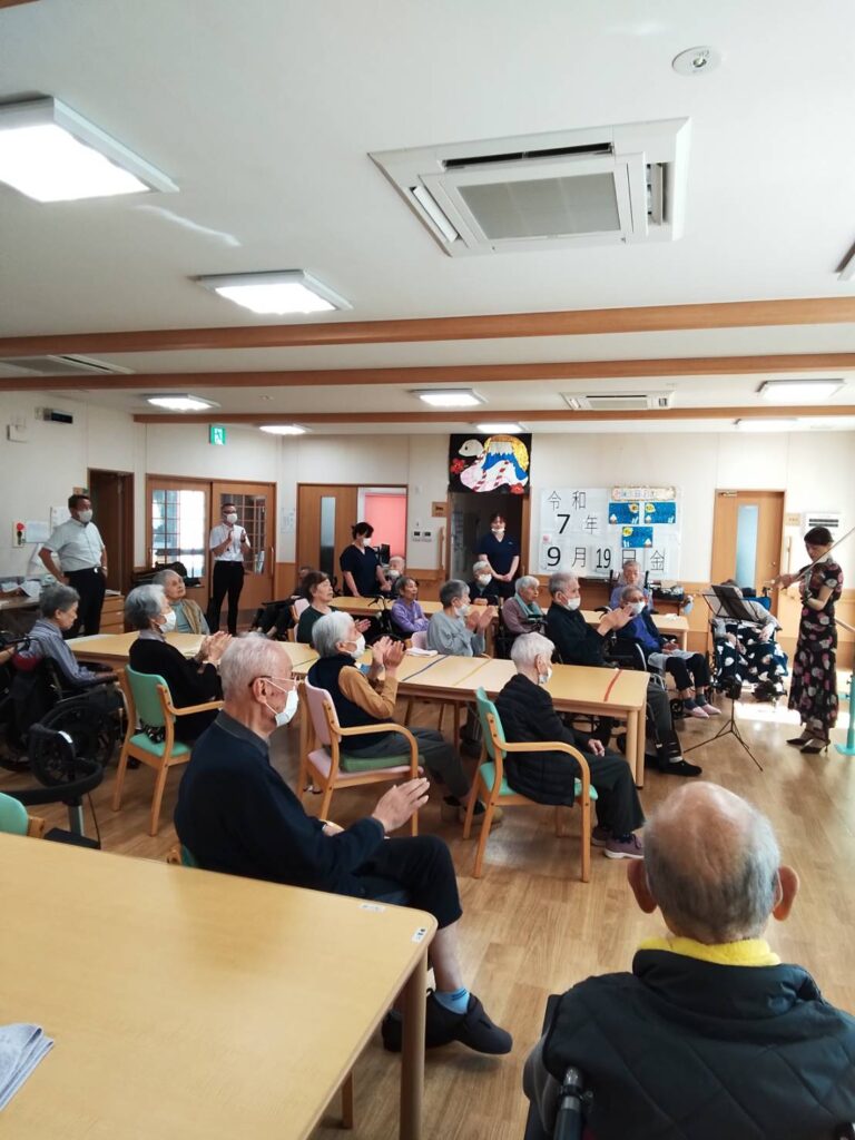 デイサービスにて職員が楽器を演奏し利用者様も喜んでました。